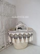 モロッコフリンジかごバッグ*ネイビーブラウン