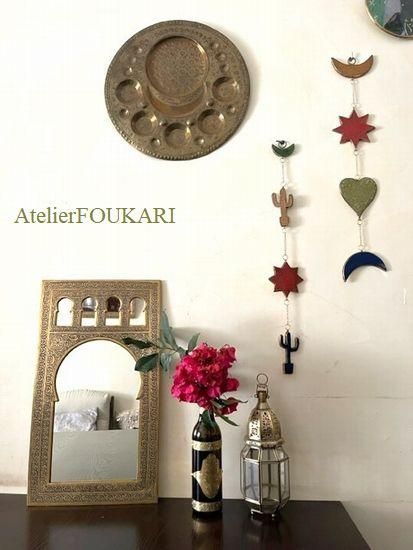 星や月、サボテンといったモロッコモチーフが可愛く、ヴィンテージの雰囲気も漂う重厚感ある作り。ベルベルバスケット、ミラーやランタン、ラグなどモロッコ雑貨との相性も抜群です。様々な組み合わせがありますが、すべて一点物!お部屋やお手持ちの雑貨の雰囲気に合わせてお気に入りの一点をお選び下さい。