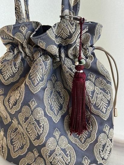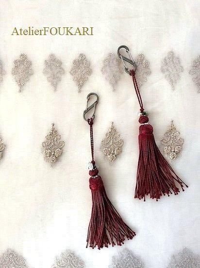 ワンポイントになるボルドーのモロッコタッセル。天然石が付いた大人っぽい一点です。