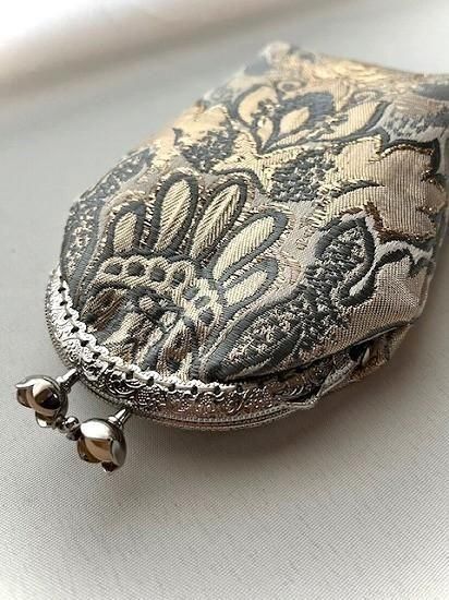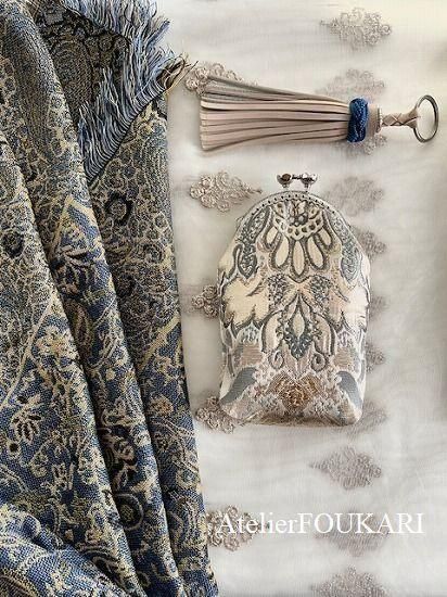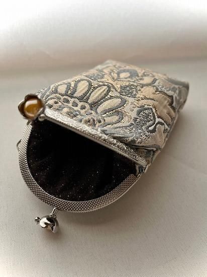モロッコファブリック*縦長がま口ポーチ*シャンパン